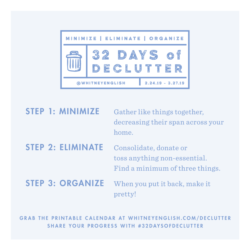I just launched the 32 Days of Declutter Challenge! If you want to join me, grab the free calendar and challenge prep packet here. Then follow along on Instagram to participate and get daily reminders!