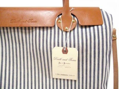 I most definitely need this weekender bag from Death and Texas. First of all, don't you love that name? Secondly, how can you resist the ticking/leather contrast? Doesn't it remind you of a great Pottery Barn room?